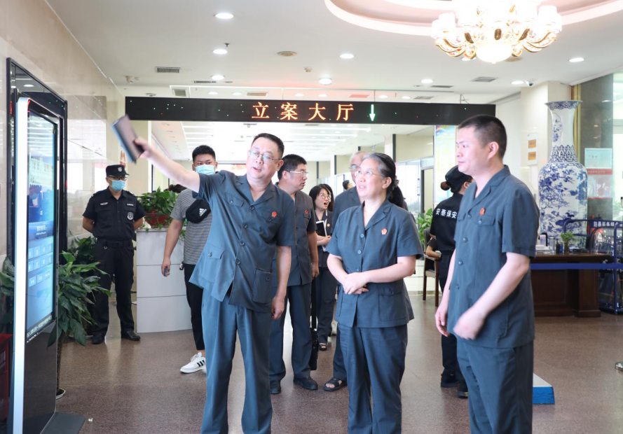 刘俊荣院长一行首先到管城法院本部机关大楼参观了诉讼服务中心,并就诉调对接工作模式以及诉前保全工作流程进行沟通交流。随后,前往南曹法庭走访了立案大厅、专业调解室、代表委员联络之家、党建基地,对管城法院法庭建设工作进行了直观了解。