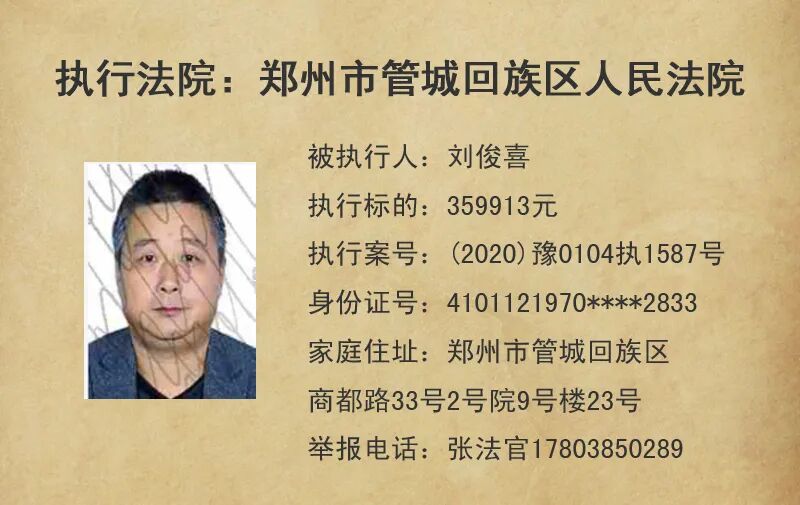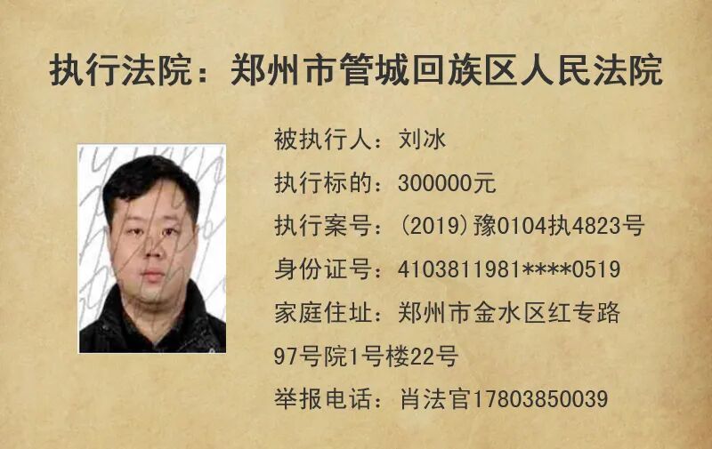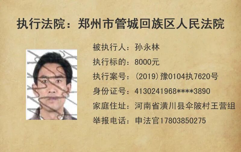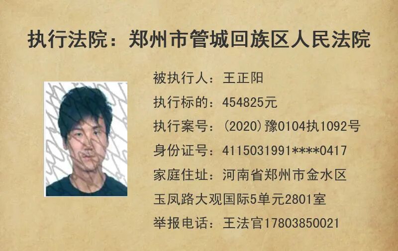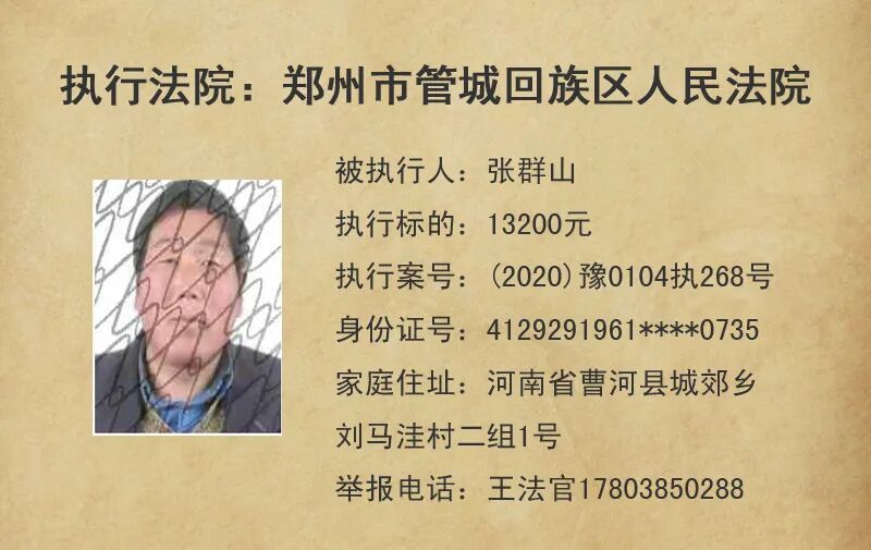 今天,管城法院公布这5名失信被执行人