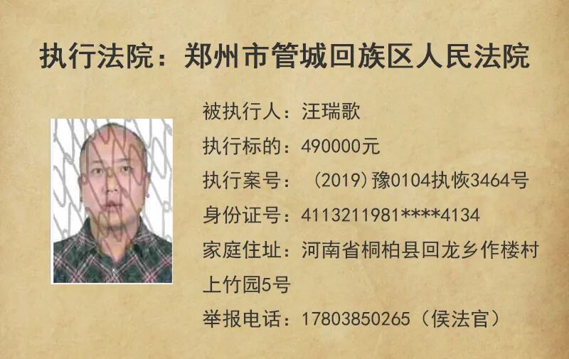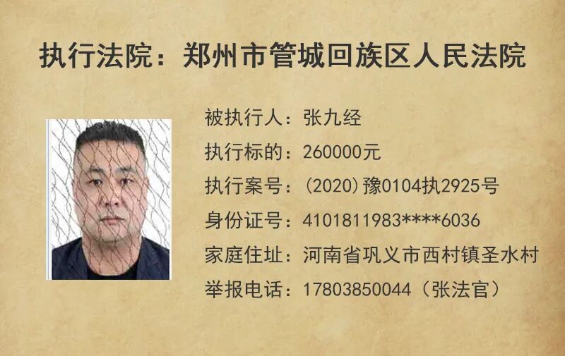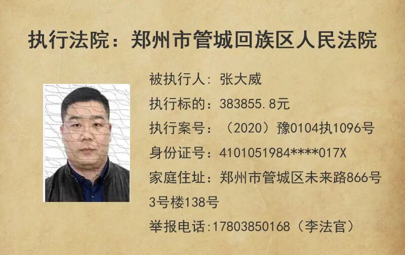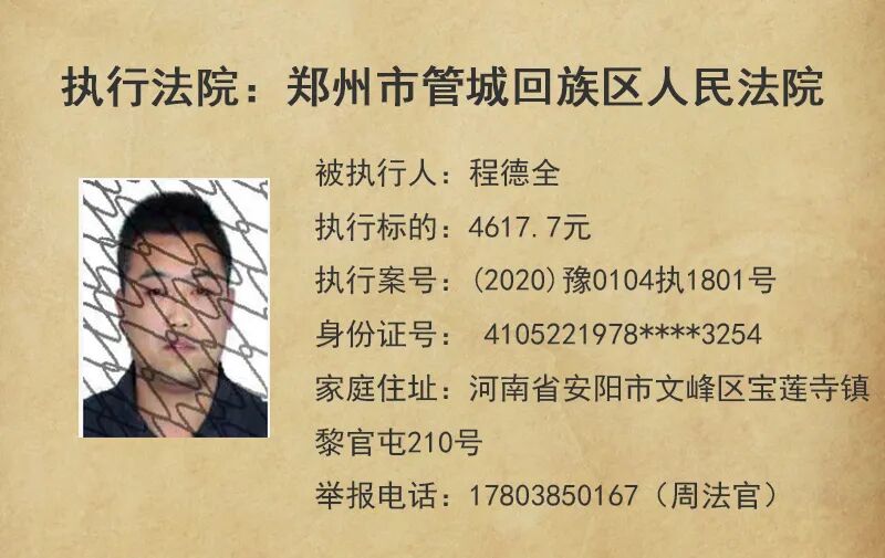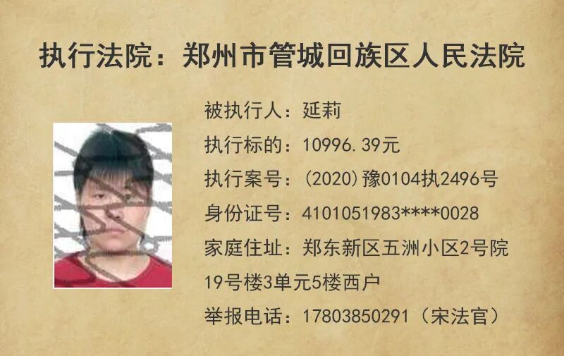 今天,管城法院公布这5名失信被执行人