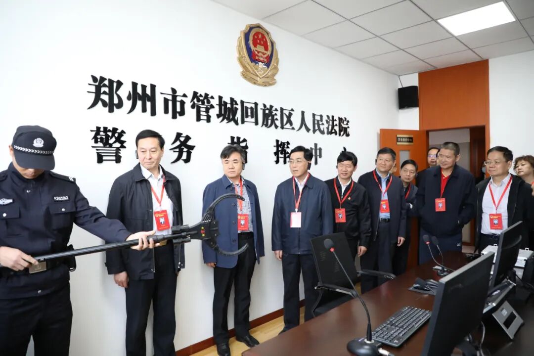 视察组一行首先到南曹法庭走访了诉讼服务中心、党建活动中心、代表委员联络之家、法官之家,查看了人员配置、网上立案、非诉纠纷化解工作及幸福管城诉源治理平台运行等开展情况,并观看了南曹法庭工作专题片《新时代 新法庭 新面貌》。随后到院机关视察了诉讼服务中心、云法庭以及“六专四室”警务建设工作情况,详细了解我院“两个一站式”、智慧法院建设等情况。