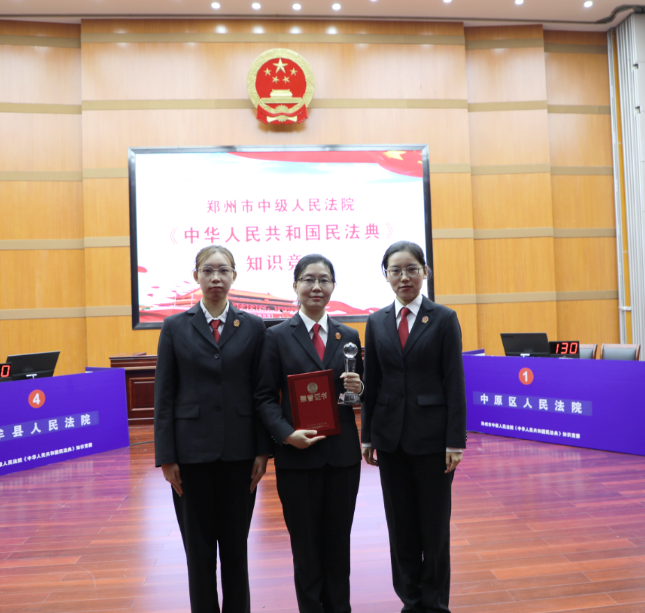 11月3日下午,由郑州市中级人民法院举办《中华人民共和国民法典》知识竞赛决赛在郑州中院大审判庭举行,由宋文梅、艾萌、石娜组成的管城法院代表队,经过激烈的角逐,获得了知识竞赛的三等奖。