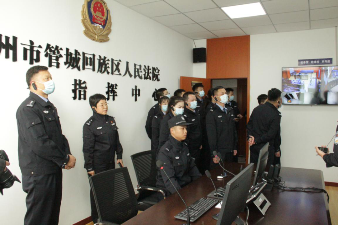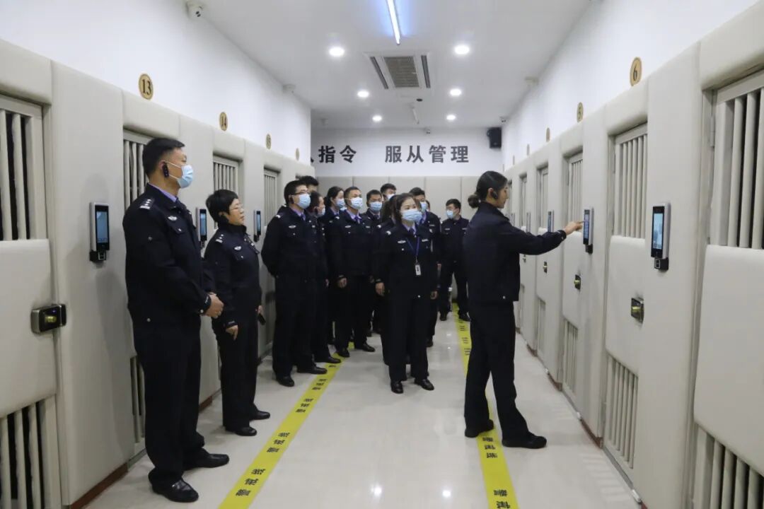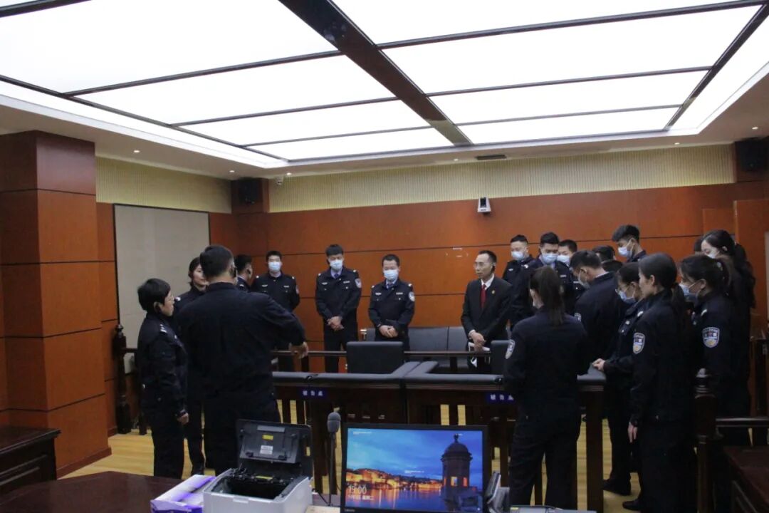 刘华中队长一行先后察看了诉讼服务大厅当事人安检通道、安保监控室、法警值班室、专用囚车库、专用羁押通道、警务指挥中心、羁押室、体能训练室、警用装备室、审判法庭等地,详细了解了司法警务保障工作开展情况以及“六专四室”建设情况。
