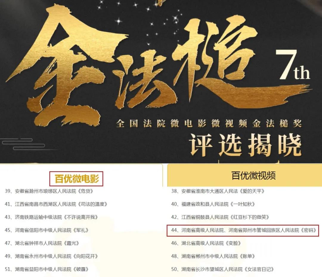 最近由河南省高级人民法院、河南省郑州市管城回族区人民法院联合拍摄的微电影《密码》捷报频传,前不久在全国法院第七届微电影、微视频金法槌评选活动中,荣获百优微电影奖。11月23日,微电影《密码》在中央政法委举办的第五届平安中国“三微”比赛中脱颖而出,再获荣誉。