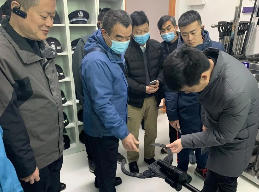 李旭政委一行首先参观了我院新建成的周界防护设备——激光驱离报警系统,新运行的当事人安检通道,听取了安检通道的改造思路、安检设施设备配备、法警值班备勤等情况。随后参观了“六专四室”建设情况,观看了车载监控系统、一键对讲报警系统、囚室锁人脸识别系统和电击抓捕器、法式盾牌等新型警用装备演示,详细了解“六专四室”建设改造历程。