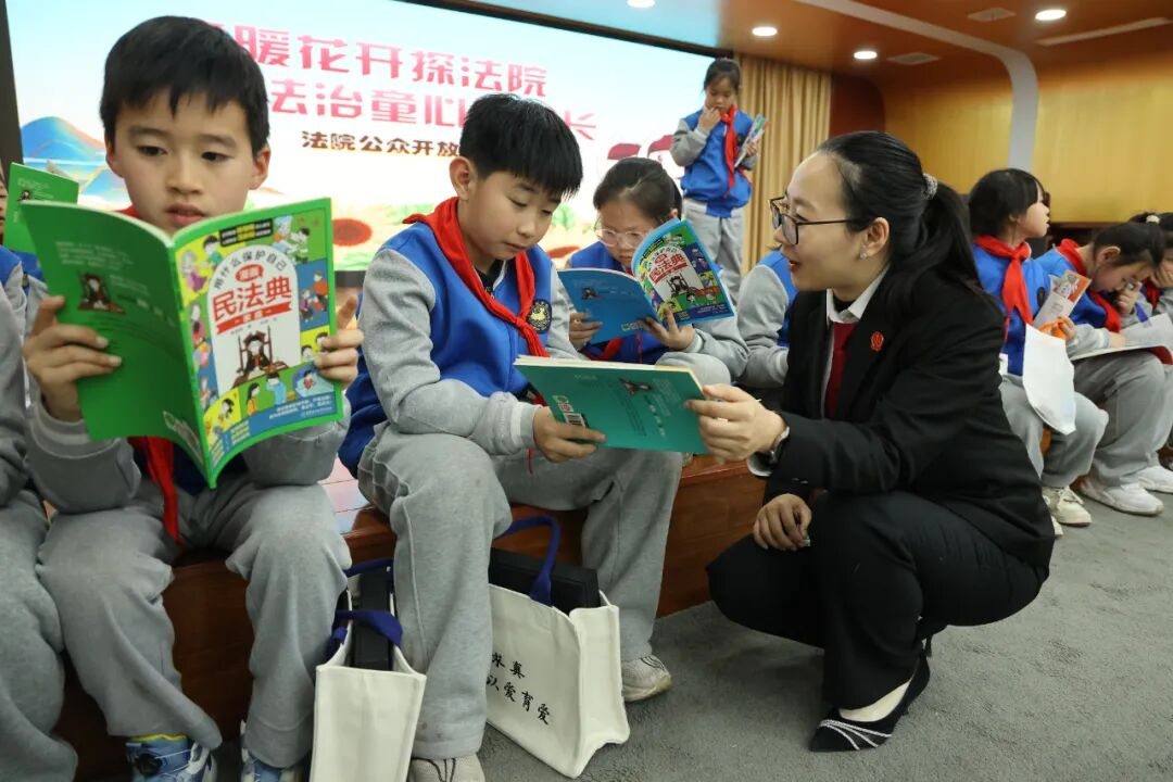 近日,郑州市管城回族区人民法院迎来一批特殊的“小客人”——来自郑州市宇华实验小学40余名师生,在干警的引导下开启一场生动有趣的法治体验之旅。