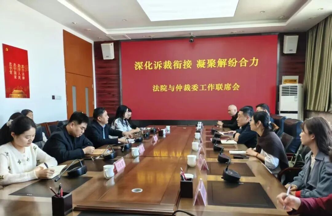 管城法院民一庭庭长范利辰及部分法官、法官助理,与区仲裁委聂磊院长带队的业务骨干们坐在一起,围绕裁审工作中的重点、难点问题深入交流研讨,共谋协作解纷新思路、新举措,切实打通劳动争议纠纷化解的“最后一公里”。